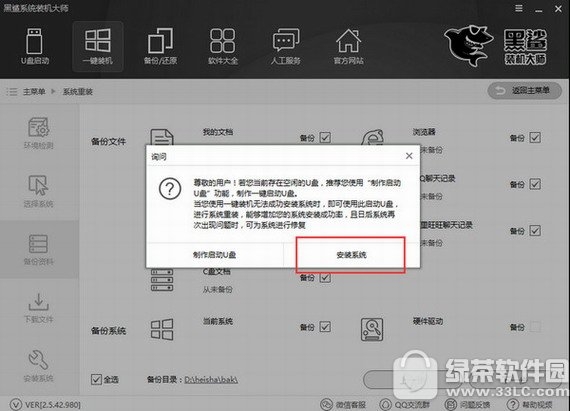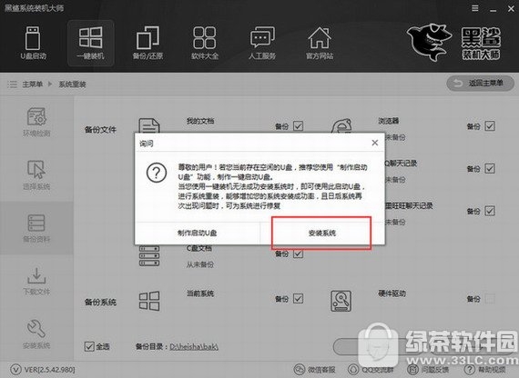 安装系统肯定要备份我们用户的资料,所以黑鲨很人性的话的帮你提供了这一步,不必再去手动备份资料。勾选你需要的备份的资料,点击下一步。