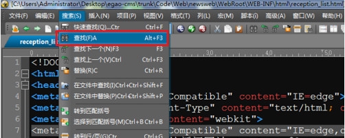 第六步:点击“搜索->查找”,可以快速查找信息,也可以按"ctrl+F"进行快速查找,有时候需要连按两次