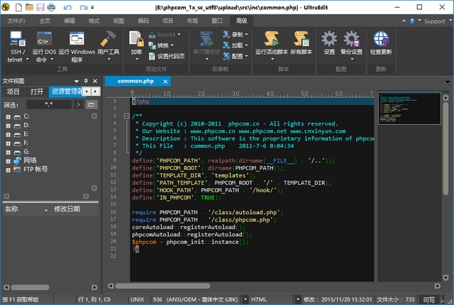 6、提供预定义的或用户创建的编辑“环境”,能记住 UltraEdit 的所有可停靠窗口、工具栏等的状态;