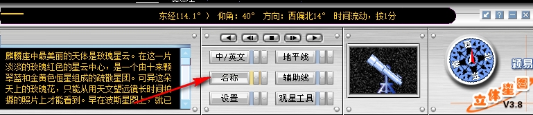3、这里就是工具了,点击名称显示,就可以在上边查看星座的名字了