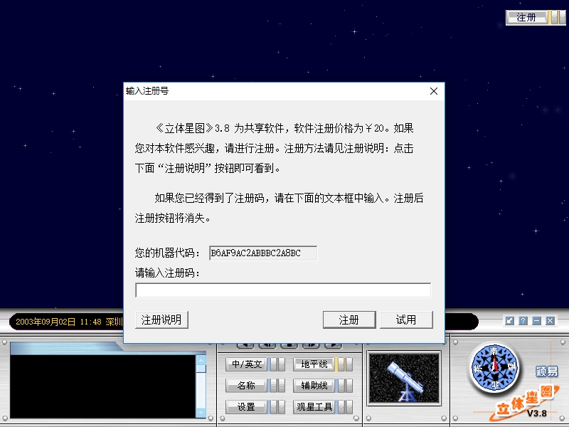 2、这里是软件的注册提示,只需要20元就可以无限使用,价格还是可以接受的