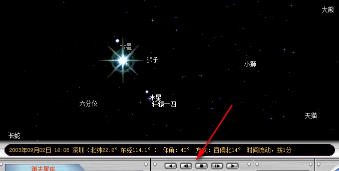 7、点击播放功能,可以自动在图中显示不同经纬度的观察地点,可以看到所有星座