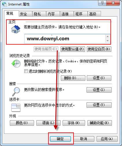 然后在主页设置处输入要设为默认主页的地址,点击确认即可。