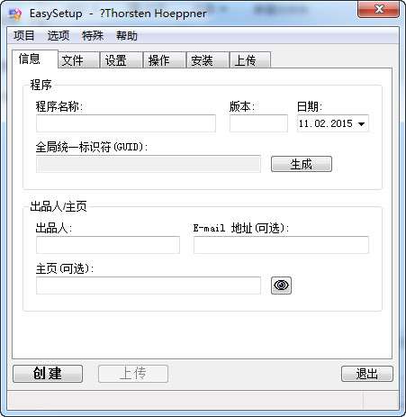 本应用程序的gui拥有一个标准和直观的窗口布局。您可以从一个新的项目编写的应用程序的名称,版本和日期。easysetup可以生成一个全局唯一标识符(guid)。作者/网页的详细信息以及填写,作者姓名,电子邮件地址和url。