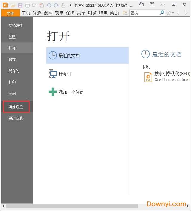 1、双击福昕PDF阅读器桌面快捷方式,打开软件后点击菜单中的【文件】在弹出的选项中点击【偏好设置】。