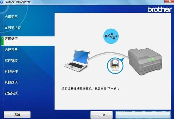 1、将兄弟MFC-8860DN打印机与电脑连接好