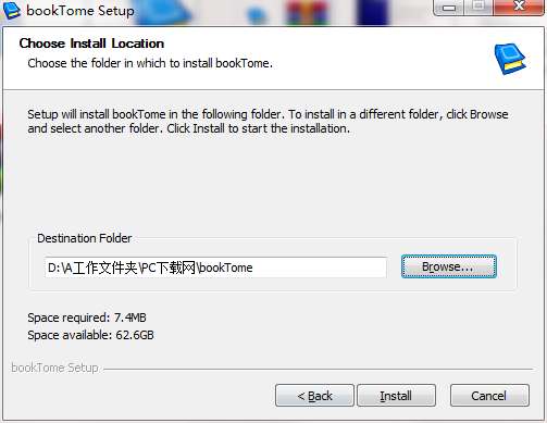 5、可以对软件的安装位置进行快速的选择,默认位置“C:Program Files (x86)saSoftwarebookTome”,建议安装在D盘,点击Install;