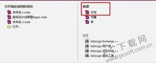 1、进入Adobe InDesign 主界面后新建一个文档。