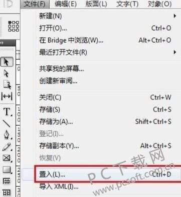 1、点击Adobe InDesign CS5左上角文件菜单,点击后在出现的快捷菜单中选择“置入”选项。