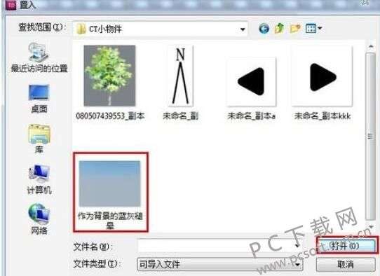 2、进入“置入”界面,找到自己想要导入的图片文件,选中后点击打开。