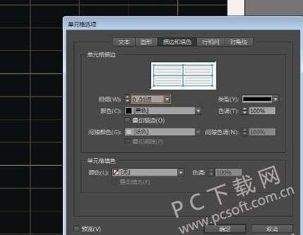 4、接下来我们可以为表格描边,点击单元格选项,打开该弹框。将上方选项卡切换至描边和填色,之后就可根据自己的需求来对参数进行调整了。