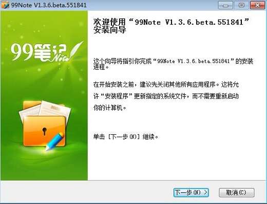99笔记中文版正在安装,耐心等待一下