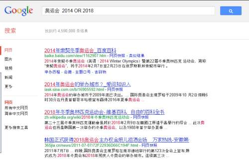 例如:奥运会 2014 OR 2018 搜索结果中会出现 “奥运会 2014”或者“奥运会 2018”的结果