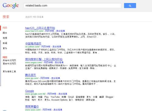 例如:related:baidu.com 可以搜索和百度类似的网站