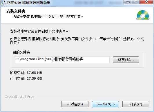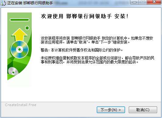 3、邯郸银行网银助手官方版软件正在安装,我们耐心等待完成即可