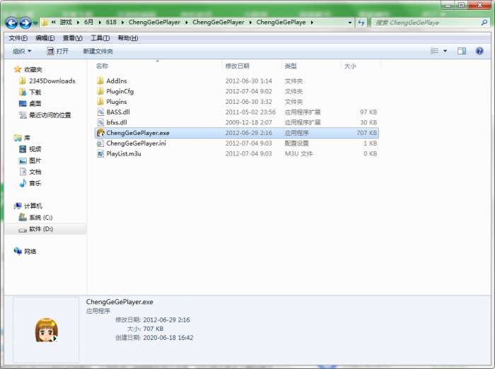 2.解压ChengGeGePlayer软件,运行“EXE.文件”