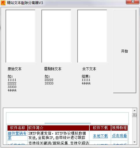 一款实用小工具,批量把原始文本里把不要的行去掉,例如一批QQ号里,有些QQ你不想要,想删除掉,那么就可以用这款软件把他们自动去掉,留下想要的QQ。
