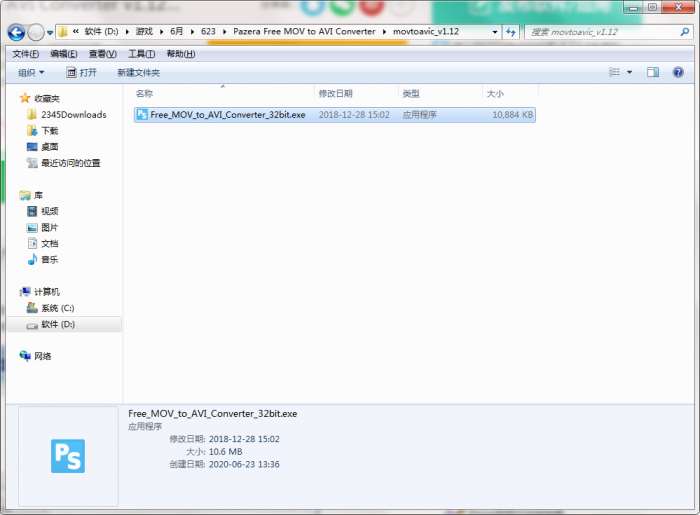 2.解压Pazera Free MOV to AVI Converter软件,运行“EXE.文件”