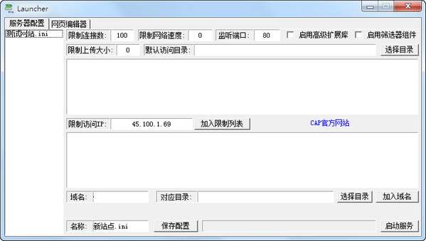 ChineseWebServer官方版是一款功能强大的中文动态网页编程软件。ChineseWebServer最新版非翻译ASP、支持TCP、易语言编写的DLL调用、筛选器等强大功能,ChineseWebServer官方版简单实用,具有一定的可测性,针对任意平台均可做服务器,同时支持限制访问ip、限制发送速度、限制上传大小。