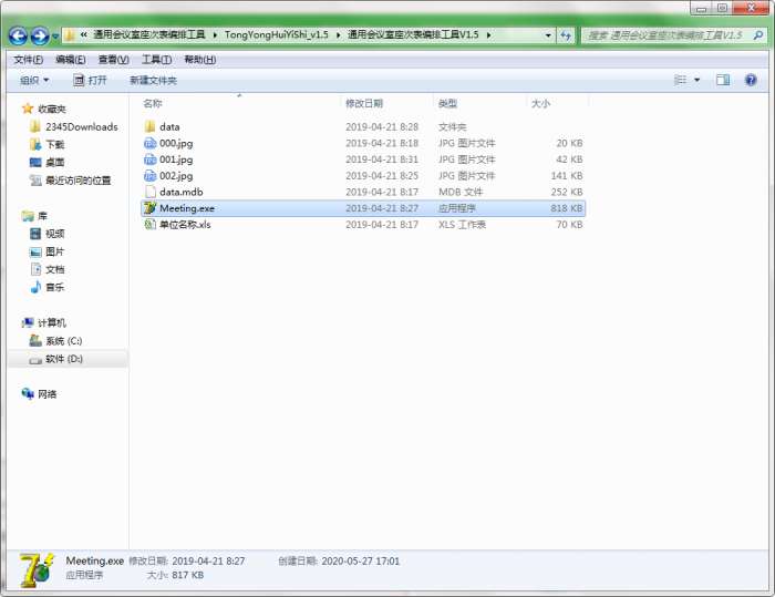 2.解压通用会议室座次表编排工具软件,运行“EXE.文件”