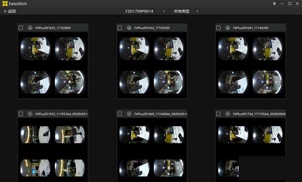 F4 Plus通过官方标配的USB连接电脑,选择DetuStitch相机模式后,会出现相机搜索中,搜索完成后出现相机里面所有的内容,可以自主选择类型:图片/视频