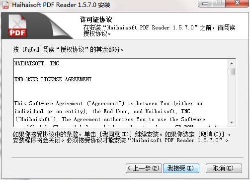 3.双击打开,进入海海pdf阅读器软件界面,选择安装语言,点击OK