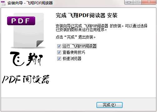6.点击完成,飞翔PDF阅读器软件安装成功