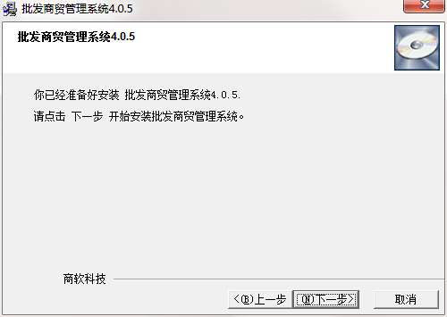 3.双击打开,进入批发商贸信息管理系统软件界面,点击下一步