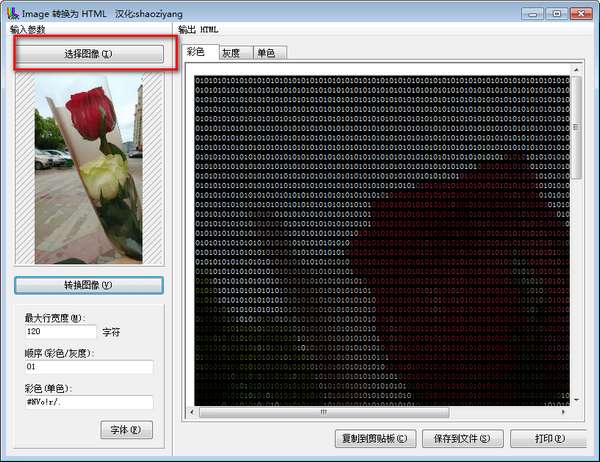 Image转换为HTML工具中文版是一款操作简单的图片格式转换软件,Image转换为HTML工具官方版能够将图片转换成代码文件格式,方便用户发到网上或者用于自己的网页中,Image转换为HTML工具中文版支持顺序设置,可以选择彩色或者是灰度,支持复制到剪贴板,将单色的数据复制使用。