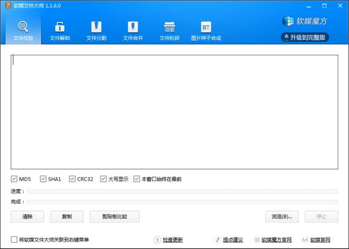 文件校验:可急速计算文件MD5、SHA1和CRC32信息的小巧Hash计算工具。