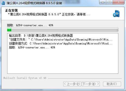 蒲公英H.264视频格式转换器电脑版正在安装,耐心等待一下
