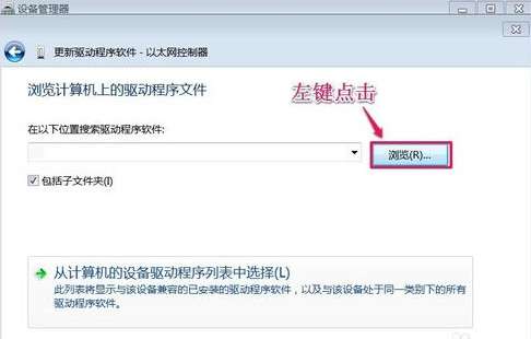 3、在更新驱动程序软件 - 以太网控制器窗口,我们左键点击:浏览计算机以查找驱动程序软件(R);