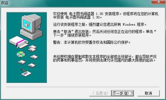 3.双击打开,进入电子图书阅读器软件界面,点击下一步