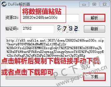 ②打开软件,将数据值粘贴后点击解析,输入验证码后可以点击下载;