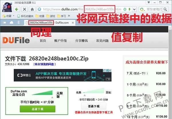 ①先打开需要下载的dufile网盘网页,将网页链接中的数据值复制