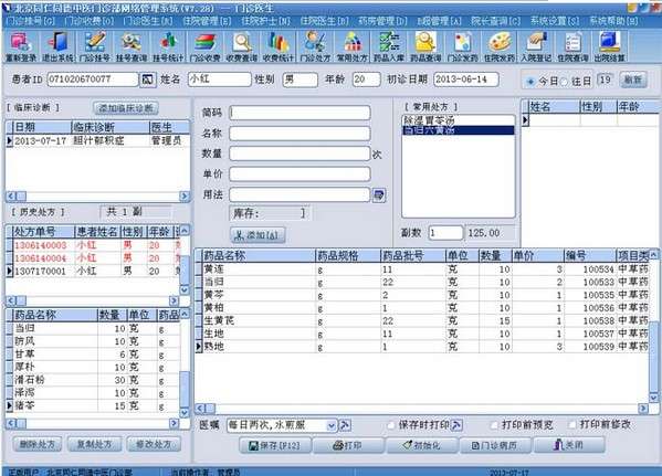 收费后,处方自动传到药房,患者到药房刷卡,即可直接取药。信息全部都是一次性录入,所有工作站共享。加之整个系统设计先进,工作量科学地分摊到各个工作站,因而有效缓解医院存在的三长一短的现象。门诊收费,住院收费,药房管理等模块直接采用高桦医院管理系统中非常成熟的部分,高桦医院管理系统开发完成于2002年,后来经过长达6年的完善和升级,数百家用户的长期使用的考验,现在功能和稳定性日臻完美。