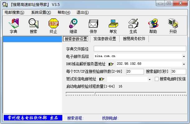 用户名字典可以通过升级方式不断更新,您也可以自己创建相应的用户名字典。您可以中断当前搜索,程序会自动保存搜索进程,以便下次继续搜索。搜索到的邮件地址可以导出为文本文件列表并直接为群发软件使用。选择搜索时自动群发功能后软件能按您预设的邮件格式和内容对正确的邮件地址发信,而且邮件发送后对方马上就可以收到。