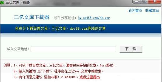 三亿文库下载器是一款百度文库下载神器,三亿文库下载器适用文库百度、三亿百度文库等站的文章内容,完全免费、免積分免费下载Doc文件格式文本文档,在新的版本号中提升了百度文库,并且精巧又完全免费出示给客户应用,有需要的朋友开来本站下载吧。
