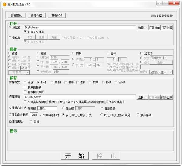 支持多种操作组合,各种操作的优先次序为:旋转-》缩放-》切割-》合并。