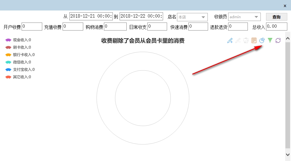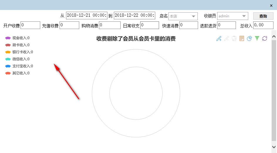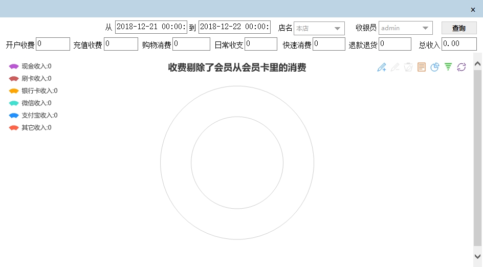 11、可以使用饼形图、漏斗图统计交班数据,也可以显示充值收费、购物消费、日常收支、快速消费