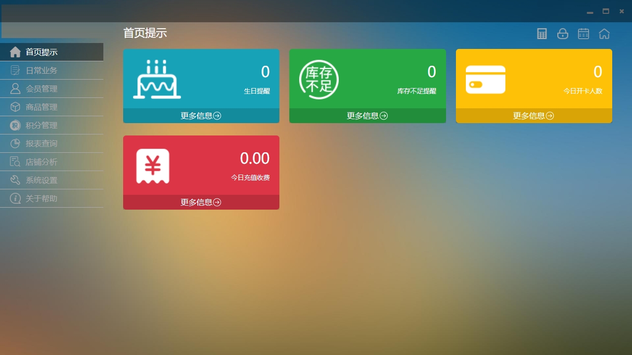 2、华思会员管理系统官方版界面如下图显示,可以查看首页提示的内容,可以查看首页显示的功能