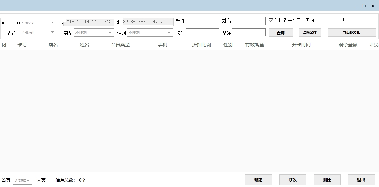 3、会员信息在这里显示,提示查询条件,输入时间就可以显示会员,输入卡号也可以显示会员