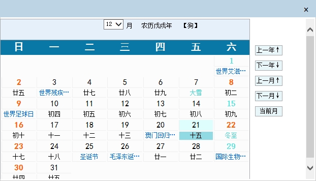 12、支持日历查看功能,在软件可以显示当前的日历,可以显示相关的节日