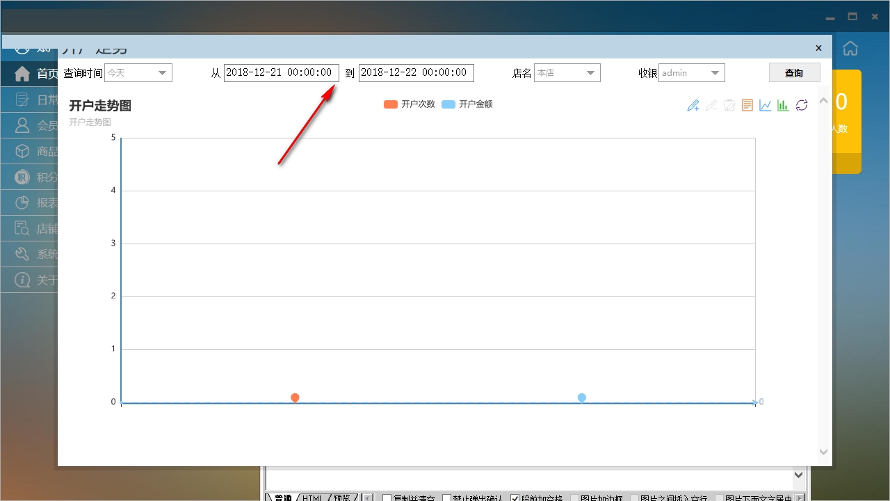 7、可以设置查询的时间,软件自动读取你设置的时间范围内开卡次数以及金额