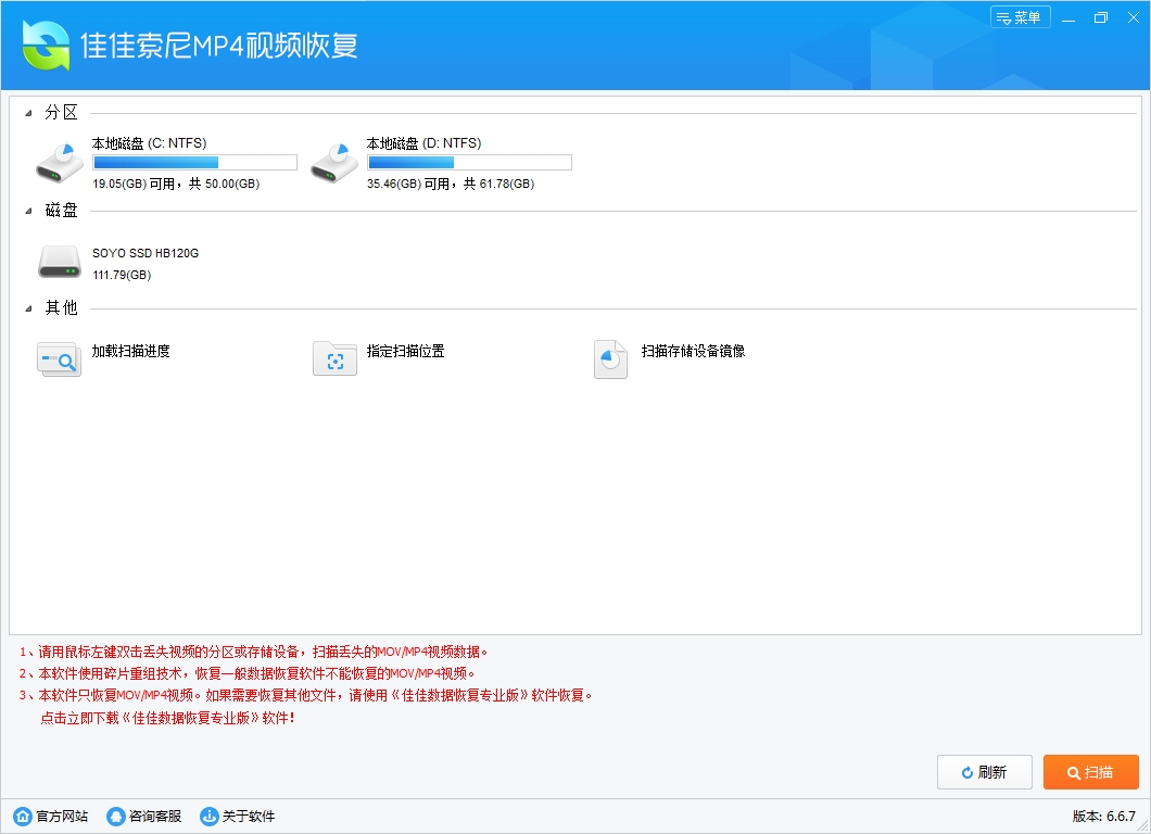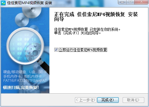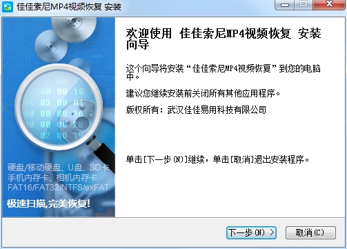 1、安装运行佳佳索尼MP4视频数据恢复软件。