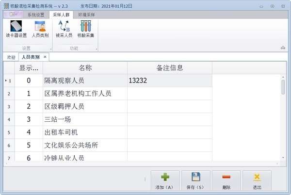 5、建立被采集人员基本信息库,,采样时自动将采集人员更新到被采集人员信息库,可以自行维护这个信息库。下次采集时,可以在直接输入被采集人员姓名拼音缩写或者身份证号,优先从人员库中获取采集人员信息,提高采集录入效率。