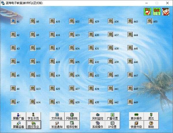 蓝海电子教室教师机是一款电子课堂教学软件。教师可以通过该软件监控每台学生计算机。当他们看到学生的情况时,教师可以更好地与学生互动,在课堂上教学,您可以免费下载。