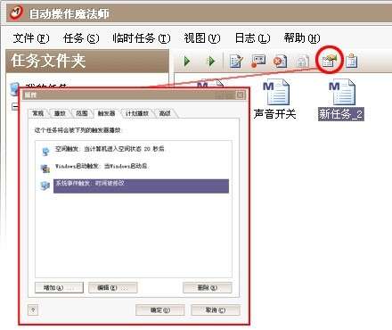 您可以给一个魔法设置一个或多个事件监视器,事件监视器是一种自动播放魔法的 机制,一个事件监视器同一个特定的事件相关联,当事件发生时魔法将会自动播放。事件可以是时间改变,断开网络连接,磁盘容量不够等等。 通过事件监视器您可以实现一些无人值守的维护操作,如当网络断开时自动进行重拨,磁盘容量不够时自动删除临时文件等等。