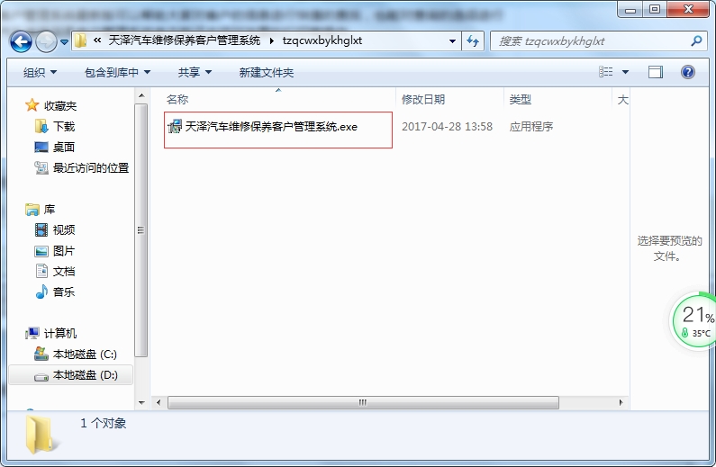 1、这本站下载文件找到"天泽汽车维修保养客户管理系统.exe"双击运行;