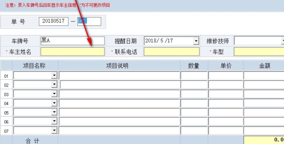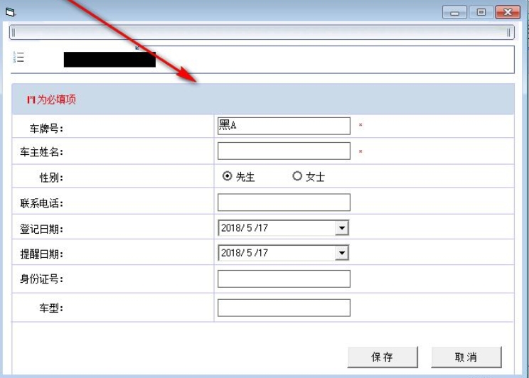 3、客户信息界面支持对车牌号、车主姓名、性别、联系电话等进行输入;